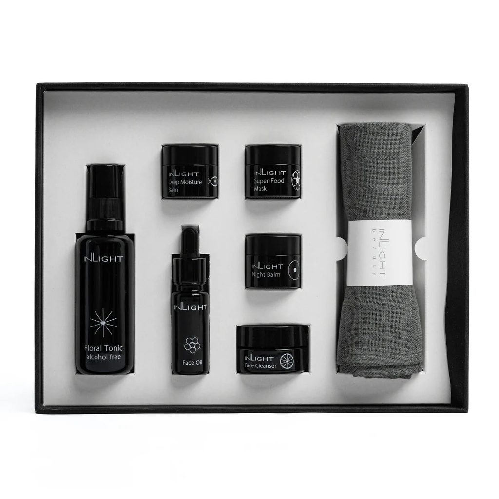 Tento exkluzivní set od Inlight Beauty představuje to nejlepší z bio péče o pleť v jednom balení. Obsahuje šest ikonických produktů – čisticí balzám, tonikum, masku, pleťový olej a denní i noční balzám, které společně vytvářejí ucelený rituál pro zdravou, vyváženou a rozzářenou pleť.